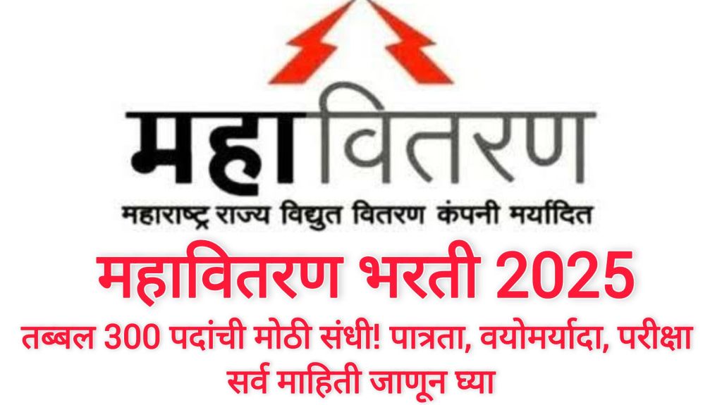 📢 महत्त्वाची बातमी! महाराष्ट्र राज्य वीज वितरण कंपनी लिमिटेड (Mahavitaran) मार्फत महावितरण भरती 2025 जाहीर करण्यात आली असून, एकूण 300 रिक्त पदांसाठी भरती प्रक्रिया राबवली जाणार आहे. इच्छुक आणि पात्र उमेदवारांसाठी ही सुवर्णसंधी आहे. खाली दिलेल्या माहितीतून तुम्हाला आवश्यक सर्व तपशील मिळतील.